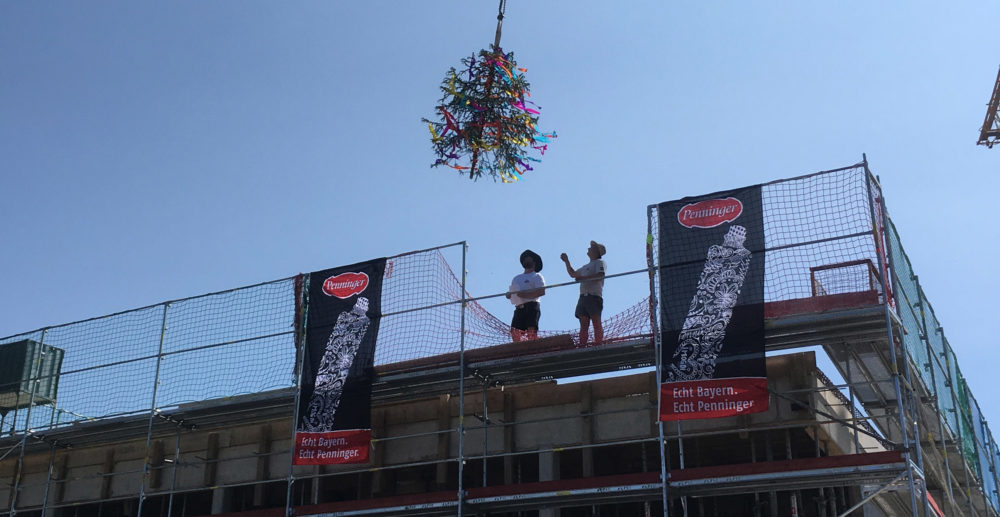 Fast genau ein Jahr nach dem Spatenstich für den neuen Standort der Hausbrennerei Penninger in Waldkirchen fand am 05.06.2019 das Richtfest des Bauvorhabens statt. Die Geschäftsführung um Reinhard und Stefan Penninger sowie Christoph Bauer feierten zusammen mit den Mitarbeitern, mit Landrat Sebastian Gruber und Bürgermeister Heinz Pollak sowie den beteiligten Bauunternehmen. Bei strahlendem Sonnenschein waren insgesamt über 60 Gäste erschienen. Wie es sich für eine Schnapsbrennerei gehört, wurde natürlich nicht mit dem traditionellen Glas Sekt auf die Fertigstellung des Dachstuhls angestoßen, sondern mit einer exklusiven Spirituose.