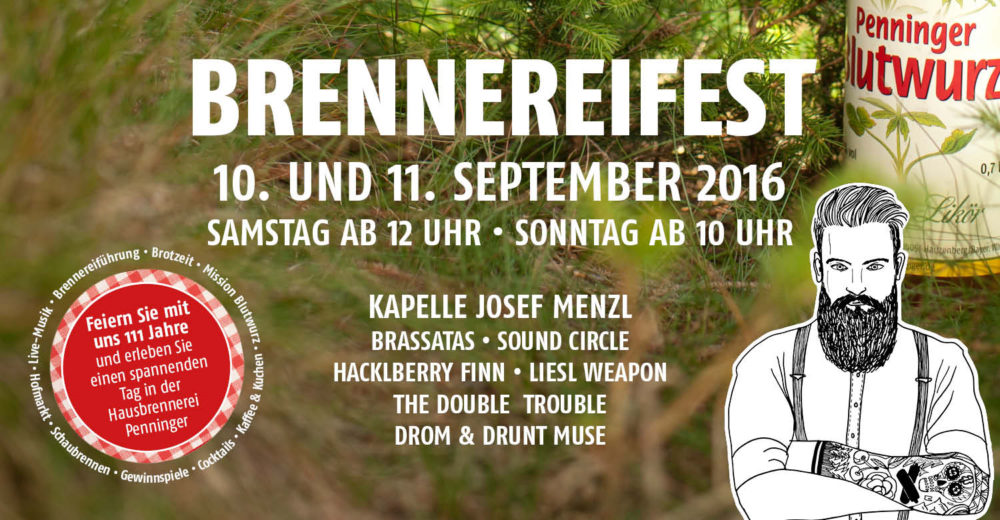 Im September steht auch dieses Jahr das Penninger Brennereifest vor der Tür. Zur Feier des 111-jährigen Jubiläums laden wir Sie alle herzlich ein mit uns auf dem Brennereigelände zwei Tage lang zu feiern. In unserem Festzelt spielen neben der Kapelle Josef Menzl, die man vom Oktober- und Gäubodenfest kennt, auch Bands aus der Umgebung wie Brassatas, The Double Trouble und viele mehr. Am Samstag-Abend wird Liesl Weapon, die Sängerin unserer Gstanzl, den Mr. & Mrs. Blutwurz Wettbewerb moderieren, bei dem Mädels und Jungs beweisen, wie blutwurz sie sind. Für das leibliche Wohl sorgt wieder der TSV Nottau. Es lohnt sich sowohl nachmittags auf Kaffee und Kuchen, als auch auf einen leckeren Burger, eine Bratwurstsemmel oder einfach nur auf ein Bier vorbeizukommen. Außerdem verwöhnt Sie Hubert Scheungraber (Journeys Passau) mit sommerlichen Cocktails.